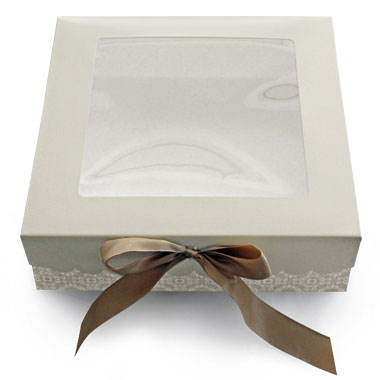 בסיס ומכסה מופרדים. בריסטול אמריקאי איכותי 350 גרם, חלון שקוף PVC. ניתן להשחיל סרטי סאטן לפי בחירה (מגיע ללא הסרט, ניתן לרכוש אצלנו גלילי סאטן).
