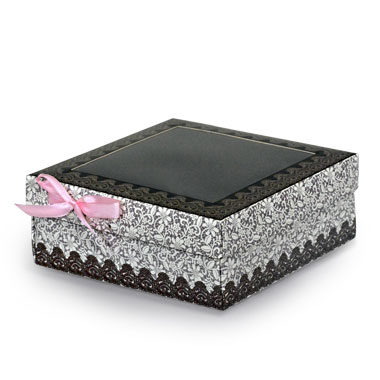 בריסטול אמריקאי איכותי 350 גרם, דופן כפולה וחלון שקוף. ניתן להוסיף חוצצים המחלקים את האריזה ל-9. בסיס ומכסה מופרדים. ניתן להשחיל סרטי סאטן לפי בחירה (מגיע ללא הסרט, ניתן לרכוש אצלנו גלילי סאטן).